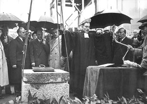 La posa della prima pietra avvenne il 6.11.1949 e fu consacrata da una pergamena di cui si riporta il letterale contenuto: